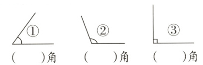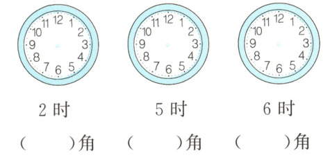 3. 请你根据所给出的时间在下列钟面上分别画出时针和分针,并写出时针和分针所形成的较小角的名称。