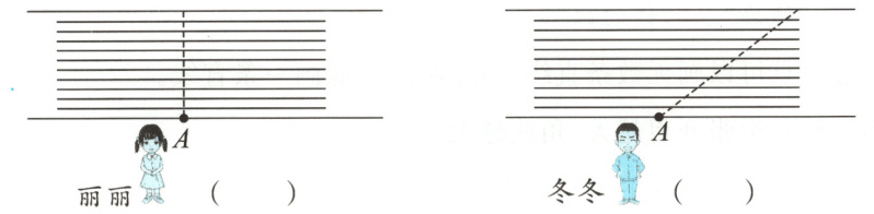5.(创新)过马路要走斑马线,横穿马路要直行。下面是丽丽和冬冬从点A处穿过马路的行走路线,谁走的路线短,在括号里画“√”。