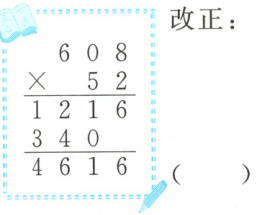 $ \begin{array}{r} 608 \\ ×\ \ 52 \\ \hline 1216 \\ 30400 \\ \hline 31616 \end{array} $