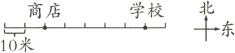 3. 淘气从商店出发,先向东走了 20 米,又向西走了 30 米,他现在距离学校多少米?