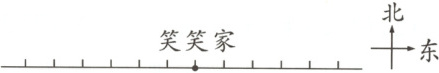 (1)如果笑笑从家向西行 200 米表示为$- 200$ 米,那么从她家向东行 400 米可以表示为(