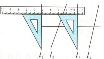 在平移的过程中发现:三角尺上最初与直线$l_1$重合的那条直角边与直线(