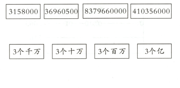 2.3158000表示3个百万;36960500表示3个千万;8379660000表示3个亿;410356000表示3个十万(注:原答案未明确呈现连线内容,这里按常规逻辑补充)