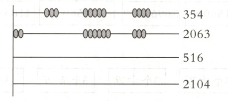 所以$516$对应的珠子表示为$00000\ 0\ 000000$;$2104$对应的珠子表示为$00\ 0\ 00000000\ 0000$。