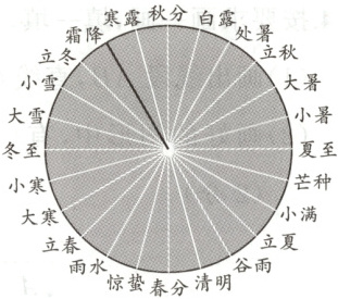 4.二十四节气把太阳周年运动轨迹划分为24等份,每15°为一等份,每一等份为一个节气。2023的10月24日是二十四节气中的“霜降”,下面与“霜降”形成135°夹角的是(