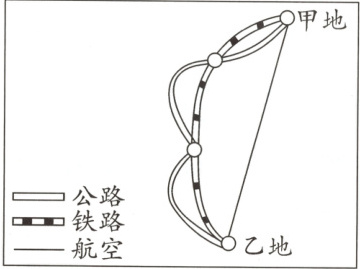 3. (生活运用)高考后,丽丽的哥哥被乙地某大学录取了。从丽丽家(甲地)到乙地有公路客车、铁路火车、航空飞机三种交通方式(如图所示)。哪种交通方式的路程最短?为什么?