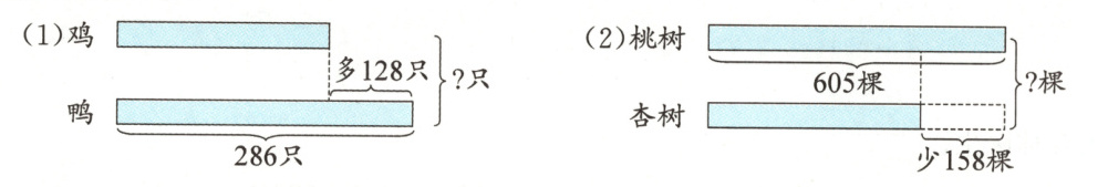 (2)605-158+605=1052(棵)(原文公式计算结果错误,按原文识别)