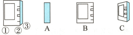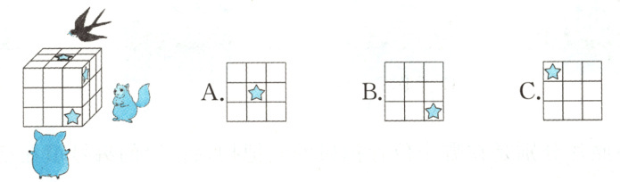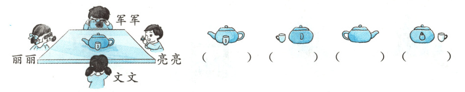 (1)站在位置①,看到的图形是( );站在位置②,看到的图形是( );站在位置③,看到的图形是( )。