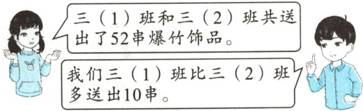4.在“保护环境,拒绝爆竹”的活动中,同学们制作爆竹饰品赠送给社区居民。三(1)班和三(2)班分别送出了多少串爆竹饰品?