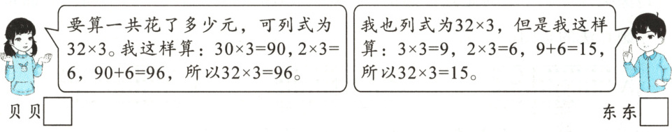 (1) 根据题中信息,他们谁算得对?请你在算得对的小朋友名字后面的$□$里画“√”。