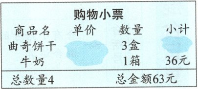 2.下面的购物小票被弄脏了,你知道一盒曲奇饼干多少元吗?