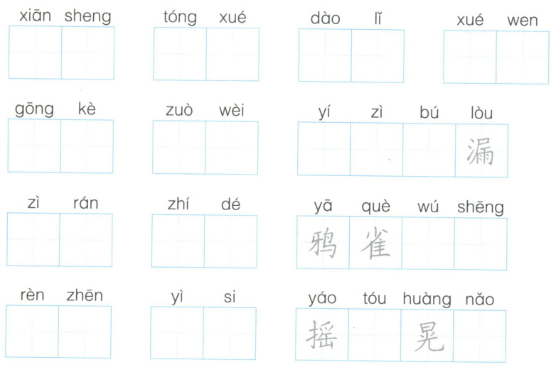 先生 同学 道理 学问 功课 座位 一字 不 自然 值得 无声 认真 思 头 晃