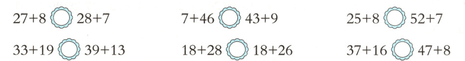 $47 + 8 =$ $6 + 29 =$ $48 + 16 =$ $26 + 27 =$