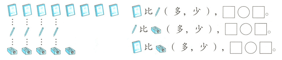 2. 多 的 画 “√”, 少 的 画 “○”。