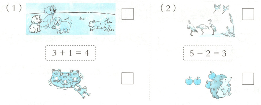 2. 下面图片中,能用算式表示的在$□$里画 “$√$” 。