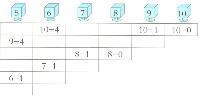 1. 邮箱里有哪些减法算式?按规律写一写,填一填。