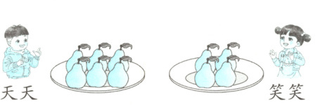 笑笑的盘子里再放几个梨就和天天的一样多?