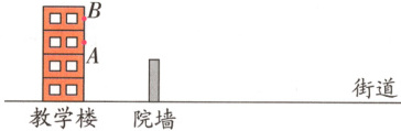 3. 如图,亮亮分别在教学楼三楼的点 A 处和四楼的点 B 处看院墙外的街道,请你画出亮亮在点 A 处和点 B 处时,分别看到的最近点 $A^\prime$ 和 $B^\prime$。