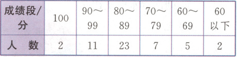 (2)(泉州南安)某数学竞赛共有50人参加,他们的成绩情况如下表所示。