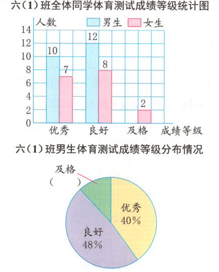 3.(衢州江山)幸福小学某次体育测试,六(1)班全体同学都达到了及格及以上,具体情况如下。