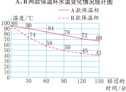 (2)当A款保温杯的水温从$95{°}C$下降到$70{°}C$时,大约经过(