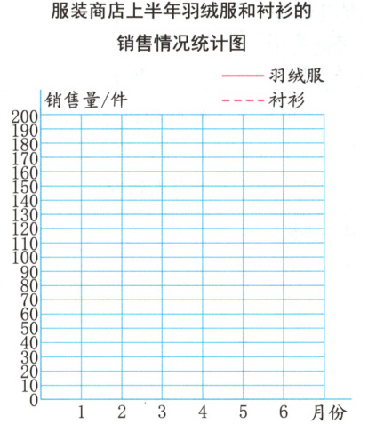 服装商店上半年羽绒服和衬衫的销售情况统计图