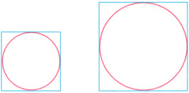 7. (探究创新)左下图中正方形的边长是$8 cm$,右下图中圆的半径是$6 cm$。分别算出左下图中圆与正方形的面积比和右下图中圆与正方形的面积比并求出比值。如果图形的形状不变,正方形的边长及圆的半径发生变化,那么它们的比值会发生变化吗?(结果保留$\pi$)