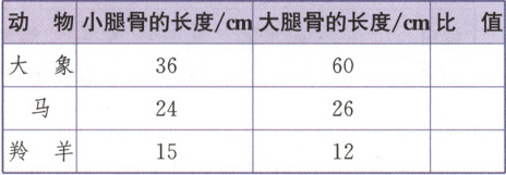 6. (生物百科)有关资料研究显示,某种动物的小腿骨与大腿骨的长度的比值越大,这种动物跑得越快。下表是三种动物的小腿骨与大腿骨的长度参考数值。