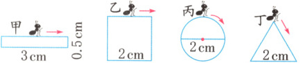 (2)(深圳龙华区)如图,四只蚂蚁耗时 1 分,分别沿着长方形、正方形、圆和等边三角形走一圈。蚂蚁(