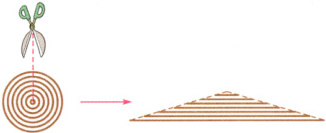 (4) 如图,把一个由草绳编织成的圆形茶杯垫片沿着一条半径剪开,得到许多长短不一的草绳,然后把这些草绳按由短到长的顺序排列,得到一个近似的三角形。这个三角形的底是$25.12$厘米,这个圆形茶杯垫片的面积是(