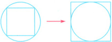 5. (思维过程)有一扇景观窗,形状是外圆内方,现改为外方内圆(如图),保留周长是$3.14 m$的圆形木框。你能求出这两扇窗户中正方形和圆的面积差分别是多少吗?