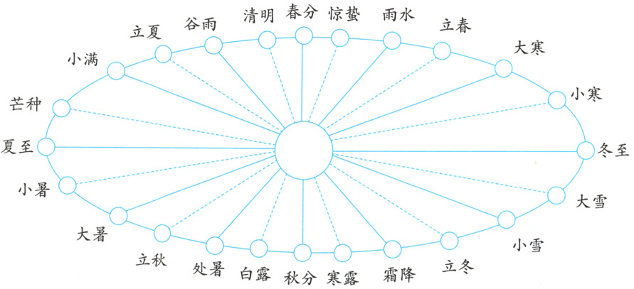 2.涂一涂。在二十四节气中把反映四季变化的节气涂上红色,把反映温度变化的节气涂上蓝色。