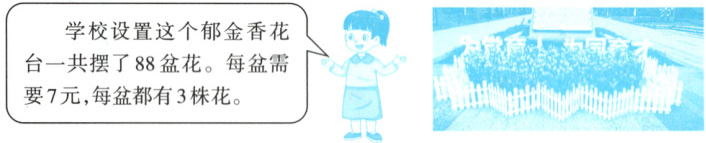 (或其他合理问题及解答,如:这些花一共有多少株?88×3=264(株)答:这些花一共有264株。)