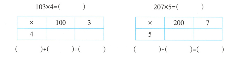 $302×4=$ $208×6=$ $703×5=$ $406×3=$
