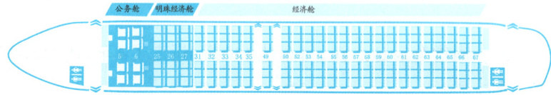 明珠经济舱:两排,每排 6 个座位,共 $2 × 6 = 12$ 个座位。