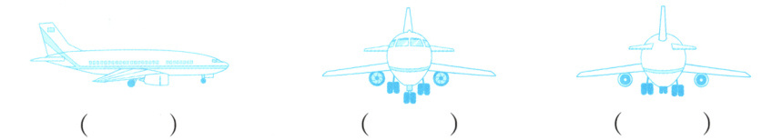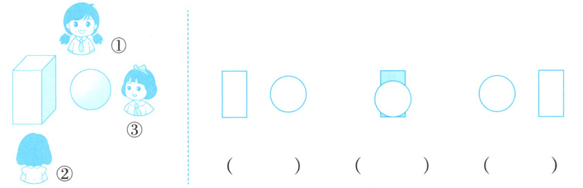 3. 下面3幅图分别是哪个同学看到的?填一填。