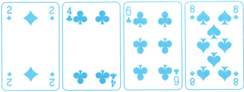 7. 想一想,下面 4 张扑克牌上的点数要经过哪些运算才能得到 24? 你能想出几种方法?(每个数都用上且在一个算式中不重复)