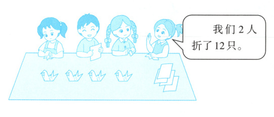 因为2人折了12只,所以每人折的纸鹤数量为:$12÷2 = 6$(只)