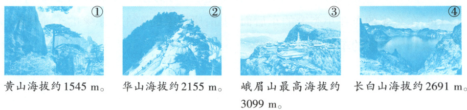 4.下面是中国的名山,请按照海拔从高到低排序。(填序号)