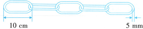 从图中可以看出,这条铁链由$4$个链环横向排列组成,每个链环长$100mm$,但相邻链环之间有重叠部分,重叠部分长度为$5mm$,$4$个链环间有$3$个重叠部分。