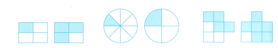 $\frac{1}{4}$◯$\frac{3}{4}$ $\frac{10}{10}$◯$\frac{8}{10}$ $\frac{5}{7}$◯$\frac{3}{7}$ $\frac{3}{8}$◯$\frac{3}{8}$