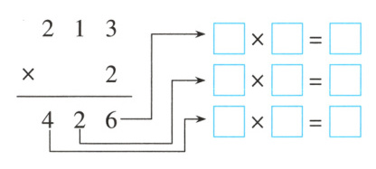 $\begin{array}{r r r}&3&2 \\ ×&&3\\ \hline& &6\end{array}$→先算个位$□ × □$,得数6写在( )位上。