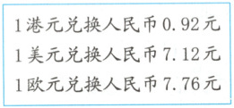 ① 李阿姨打算到欧洲旅游,她去该银行把$3880$元人民币兑换成欧元,能兑换(