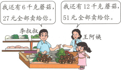 3.(广州白云区)如果李叔叔和王阿姨卖的蘑菇品相是一样的,谁卖得更便宜?