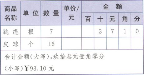 5.先算一算每根跳绳和每个皮球多少元,再将下表填完整。