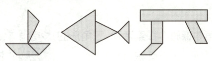 5. 下面的图形是由哪些基本图形(长方形、平行四边形、三角形或梯形)组成的?动手画一画。