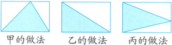 3. (说理表达)要求将一张相同的长方形纸剪成一个最大的三角形。下面是三名同学的做法: