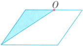6. 如图,平行四边形的面积是32平方厘米,O为平行四边形一边的中点,求涂色部分的面积。