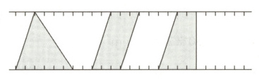 3. (蚌埠淮上区)在下面的平行线间,分别画出一个与涂色部分面积相等的平行四边形和梯形。(每小格表示$1$厘米)。