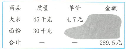3. (湛江)如图,食堂采购员不小心将购物单弄脏了。请你根据图中的信息,帮助食堂采购员求出面粉的单价。